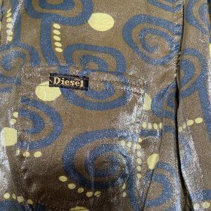 Women's Vintage Diesel Button Up Shirt Blouse Shiny Printed Long Sleeve Size M
