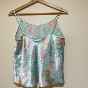 Women’s Vintage Silk Satin Floral Print Tulip Slip Tank Top Pjs Top No Size Tag