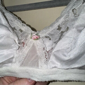 Women’s Vintage White Lace with Floral Bow Coquette Bra Bralette Size: 36B Cute