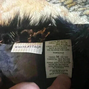 Women’s Vintage White Stag Leopard Print Jacket with Faux Fur Trim Size M