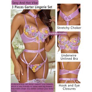 🆕Women’s Violet Embroidered Lace Underwire Strappy Bra and Panty Set Polyester