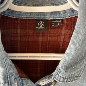 Women's Volcom Flannel Lined Stone Wash Denim Button Down Collared Shirt