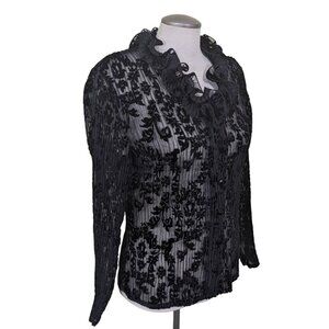 Womens Whimsigoth Top Med Black Sheer Velvet Burnout Witchy Alt Ruffle Collar
