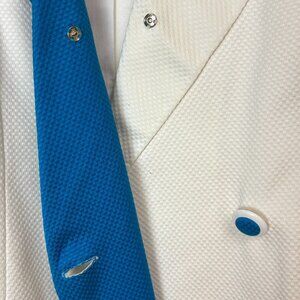 Women’s White & Blue Geometric Power Suit W/Jacket & 2 Skirts