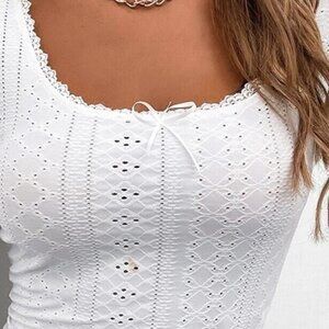 Women’s White Crop Fitted Top | Scoop Neck | Long Sleeves | Knitted Polyester