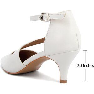 Women's White Polyurethane Pointed Toe Cross Strap Low Kitten Heel Pumps