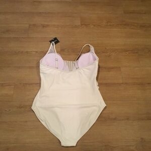 Brand new Aidonger women’s size XL white one piece bathing suit. Features V neck with mesh detail, adjustable spaghetti straps, ruched side for slimming affect, modest bottom coverage, removable padded cups and fully double lined.