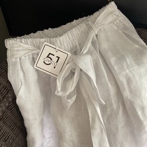 Light linen white pants. They land around my ankles (in 5'5") and wide legs.