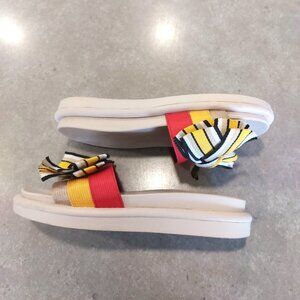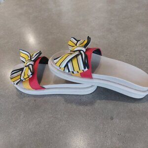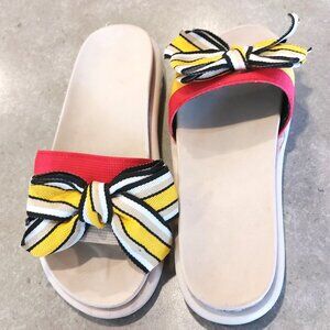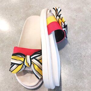 Women's Wide Width Comfy Platform Bow on Vamp Slide Sandals Red/Yellow/Tan 8.5M