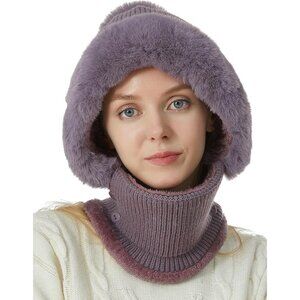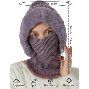 【ONE-PIECE KNIT HAT】: The one-piece scarf cap design can be used as a hat, neck warmer or balaclava for better wind and cold protection. Hooded scarf hat protects your face, ears, and neck at the same time