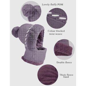 Women’s Winter Beanie Hat Set Fleece Lined Knit Balaclava with Neck Scarf