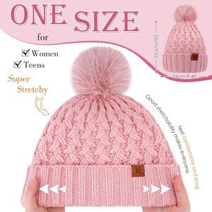 Beanie for women have a thick double lining design. Fluffy pompoms, lively and lovely, full of youthful vitality. he foldable brim will provide extra protection for the forehead and ears against cold weather for a great winter.