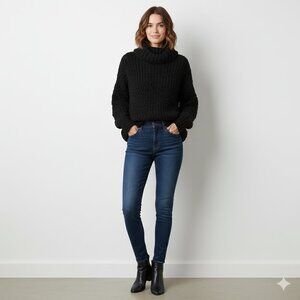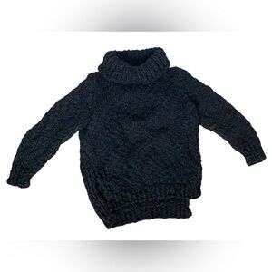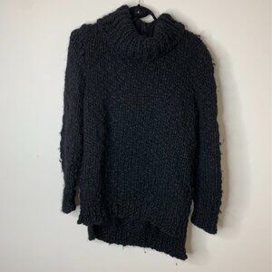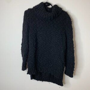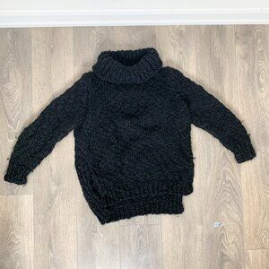 Wolf and Cecil Merino Wool Chunky Knit Turtleneck Sweater Cut Out Black