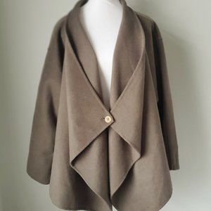 Women's Wool Overcoat Cape Drapey Taupe Olive Cozy Comfy Boho Dressy One Size