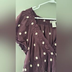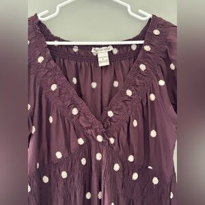Women's XL Dress Boho Embroidered Flowers V-Neck Midi Country Festival Purple
