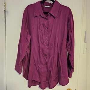 Womens XXL purple button down shirt top plus size long sleeve Soft NWT