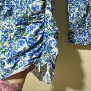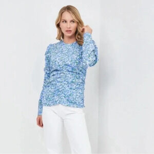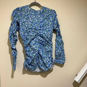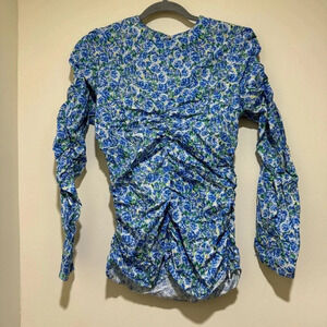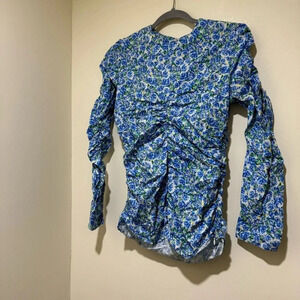 Women’s Zara Brand Blue Floral Ruffle Scrunch Long Sleeve Blouse Top Size: M