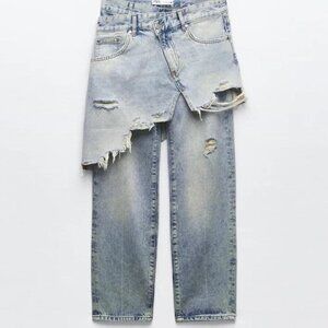 Women's Zara The Layered Denim Pant Blue Jeans Straight Leg Size 2