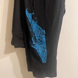 Women's bamboo legging with a whale design along the right leg. Size XL. Black with blue whale print. Excellent condition.
