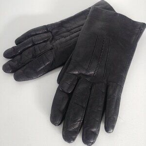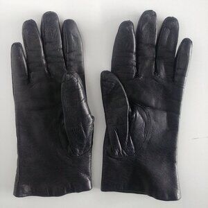 Womens black leather gloves fur lined size 6 1/2