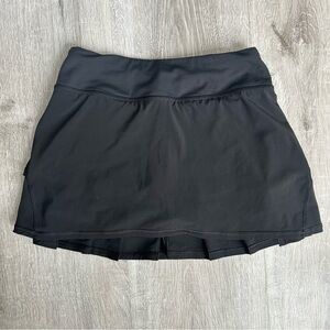 We made this running skirt to complement your long strides. We included built-in shorts so you can feel confident no matter how large you leap. The shorts have sticky elastic on the hem so they don't roll up.