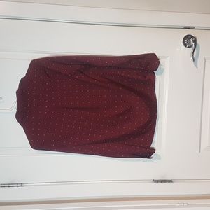 100% polyester blouse by Banana Republic. Size small, maroon with off white checked pattern.
