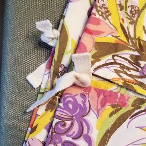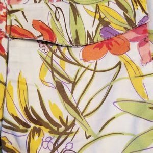Beautiful floral capris with vibrant orchids and lilly's from Coldwater Creek. Front pockets along sides and one rear pocket. Slit detail at leg edge with ties. Inseam measures 24", rise is 11" and waist measures 16" across (low rise) . Excellent condition.
