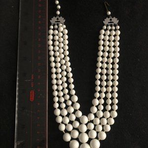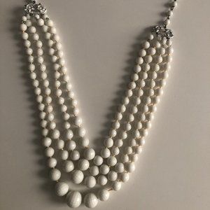 It is a very nice 4-strand necklace with white beads, it is around 14" long and in good condition.