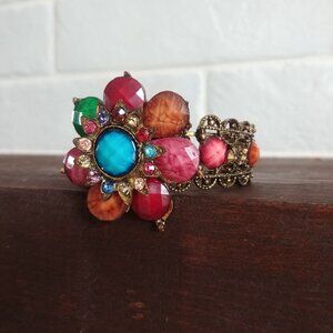 Women's colourful large flower intricate cuff bracelet brass multicolour stones