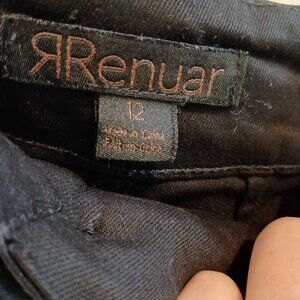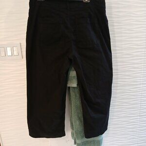 Black Renuar wide leg crop jean with front patch pockets. Size 12. Waist 18 inches. Rise 12 inches. Inseam 23 1/2 inches. Leg opening 11 inches. Made with 65% tencel and 25% cotton and 7% polyester and 3% spandex. Very stretchy and soft.