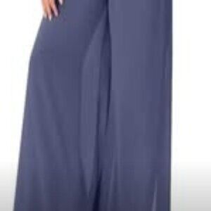 High waisted pants with a flowy wide leg fit and lined with slim fitting lining.