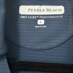 Pebble Beach short sleeve golf shirt - never worn Size L navy blue with navy and purple accent strip down front.