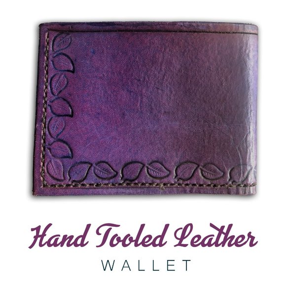 Women's hand tooled Leather ornate pattern purple wallet