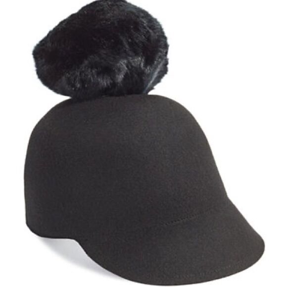 A faux rabbit fur pompom adds a playfully chic touch to a structured felted wool cap.