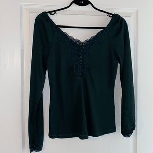 EUC only worn once. Veridian green top with lace trim and button detail.