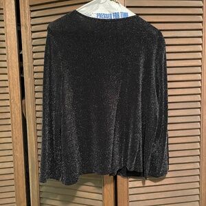 Size large; sparkley lightweight jacket with single button closure at neck. Great for the festive season. Black colour.