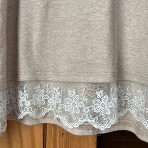 Beige maternity tunic top with lace and rhinestone detail at the bottom, in great condition! Womens size small, no brand tag. Sooo cute on, photos don’t do it justice
