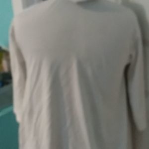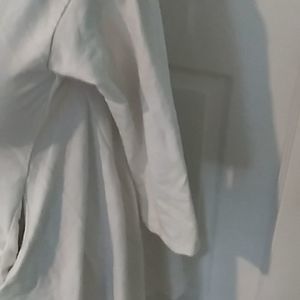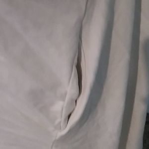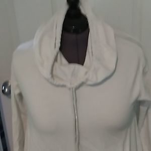 Beautiful, white, 3/4 sleeve, cowl neck, drawstring shirt.