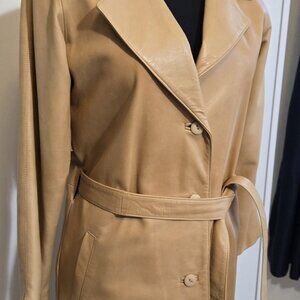Gorgeous tan coloured, butter leather full length coat with tied waist.