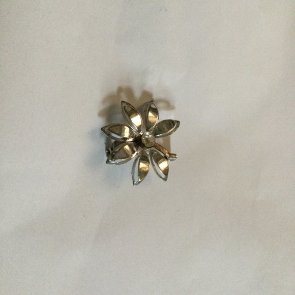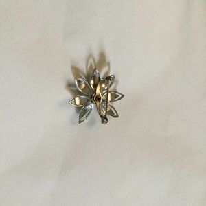 It is a women's pin brooch flower shape, 3.5cm x 3.5cm x 0.5cm in dimensions, and in very good used condition.
