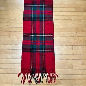 A really pretty classic scarf in vibrant red. I've had it for ages but haven't worn it for ages and it's been stowed away. No tags but it feels like wool or a wool blend.