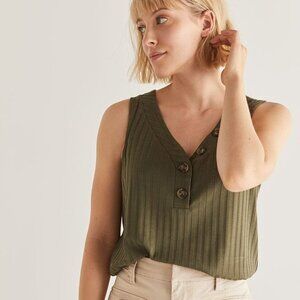 Womens ribbed tank top button neck green olive khaki Neutral Basics