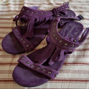 Lovely deep purple suede flats with stud detail and fringe. Very good condition.
