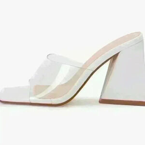 Women's sandals - white- block heel -clear strap. Size 11.