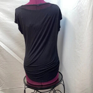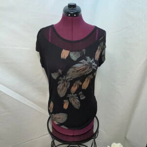 Edista shirt sleeve shirt with mesh collar lining feather design on it and super soft there is a little whole in the mesh but no other damages