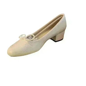 These pumps come in UK size 3.5 (US size 6, EU size 36, AU size 6) and are perfect for the fall and spring seasons. The solid white pattern with a 40s theme adds a touch of vintage flair to any outfit. Whether you're dressing up for a night out or adding a chic touch to your work attire, these chunky heels are a must-have for any fashion-forward woman.