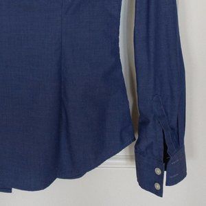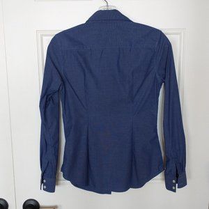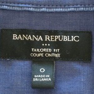 Women's size 0 Banana Republic Tailored Fit button down shirt. Color is blue. Great condition, no marks or stains, previously worn a handful of times. Great, not excellent condition, only because I removed the inside fabric composition tag after purchasing (see last pic). Measurements: armpit to sleeve length = 17", neck opening to hem length = 20.5", armpit straight down side to hem length = 13", top of shoulder to hem length = 20.5". Flat measurements: armpit to armpit = 16", across waist = 14", across hem = 17.5".