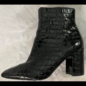 Step out in style with these chic black croc-embossed ankle boots. Perfect for any occasion, these boots add a touch of elegance to your outfit.