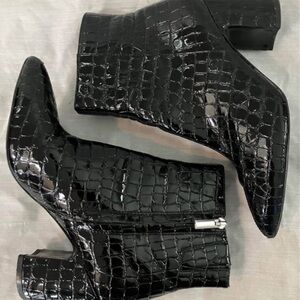 Step out in style with these chic black croc-embossed ankle boots. Perfect for any occasion, these boots add a touch of elegance to your outfit.