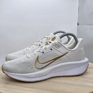 The product is a women's size 8 Nike Quest 6 Road Running Shoes Sneakers in the style code FD6034-003. These sneakers feature a low top shaft style, lace-up closure, and are designed for casual occasions. The shoes are signed by Nike and come in a stylish gold color. Made with mesh upper material, these athletic sneakers are part of the Nike Quest product line and are suitable for the seasons of summer, fall, and spring.